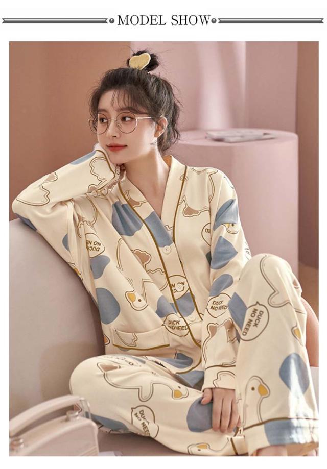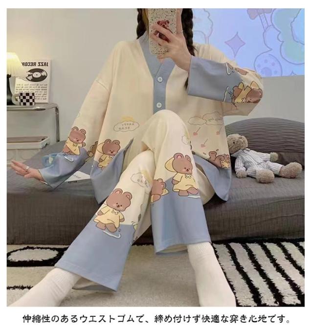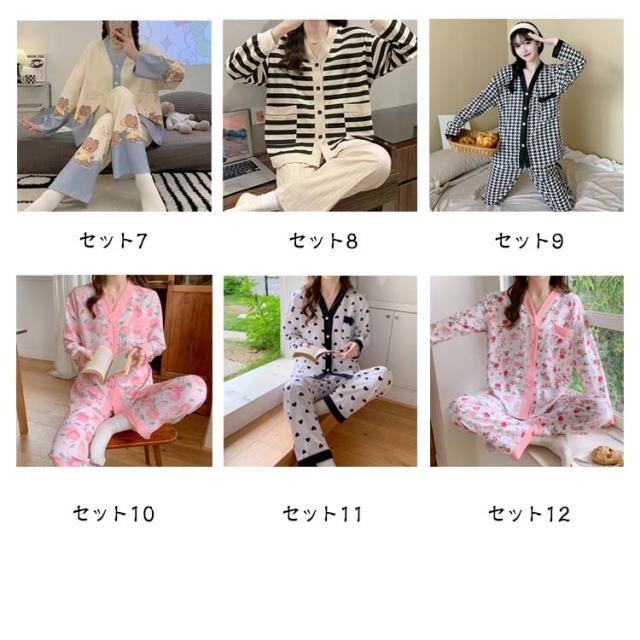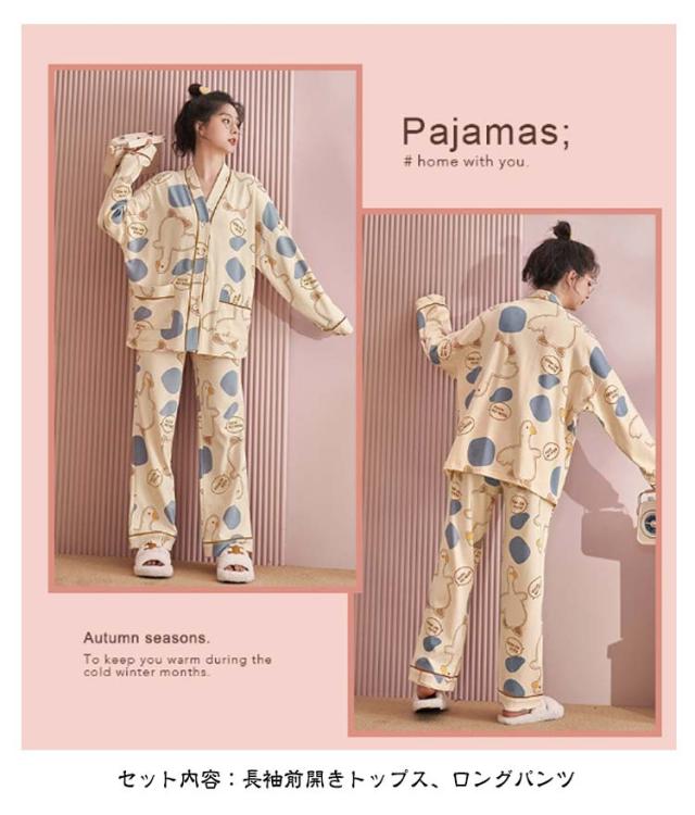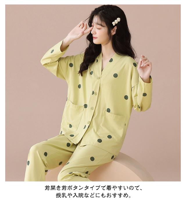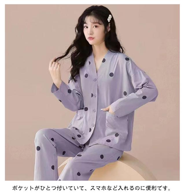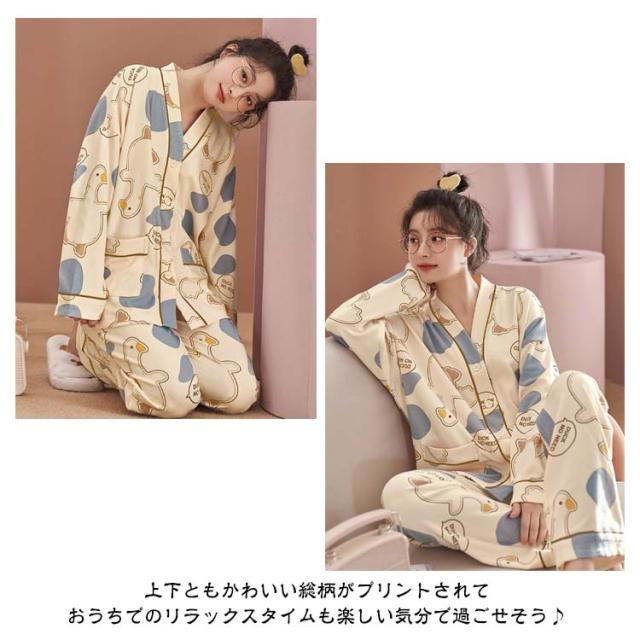 春夏秋冬 パジャマ 長袖 ナイトウェア 上下セット 前開き レディース 部屋着 長ズボン 哺乳 ルームウェア 襟なし 入院 セットアップ ロングパンツ 寝巻き 寝間着 女性 婦人 Vネック 可愛い トップス おしゃれ 授乳