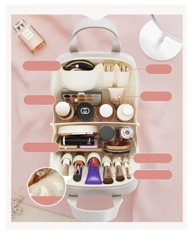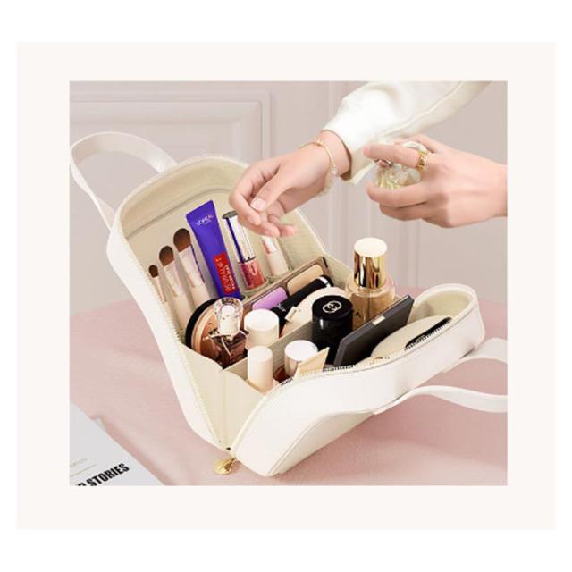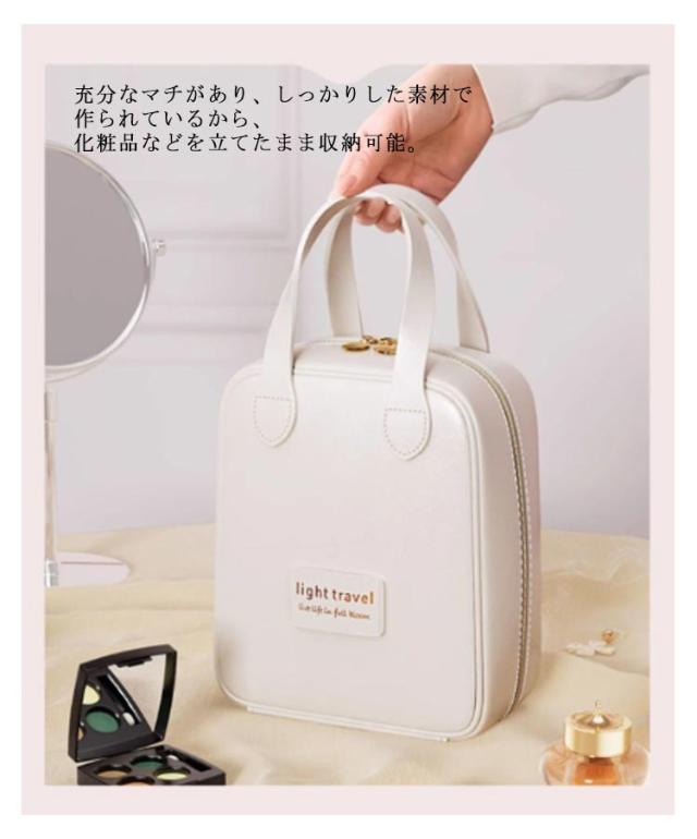 | スキンケアから全ての化粧品が入る!旅行や出張に便利なコスメポーチが登場♪ 中身が見やすいタテ収納は必要なものが見つけやすく忙しい朝でも安心。 充分なマチがあり、しっかりした素材で作られているから、化粧品などを立てたまま収納可能。 ポーチの開口部は、大きく開くダブルファスナー仕様。仕切りポケットがあり、中に入れたものが一目でわかるので小物の収納に最適♪ ポーチ上部には持ち手付き。お家の中でも外出中も、メイク用品を手軽に持ち運べる♪ 旅行・出張やお泊りはもちろん、ジムや職場のロッカーなどどの置きポーチとしても便利です。 | |