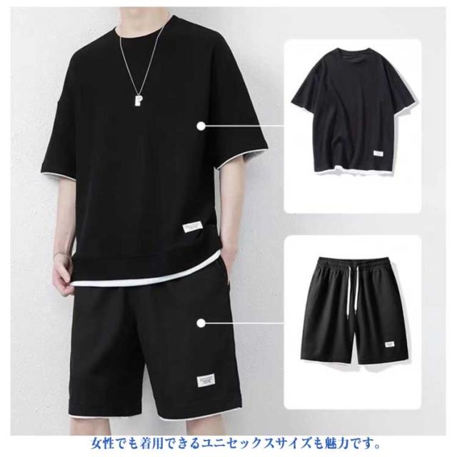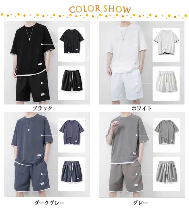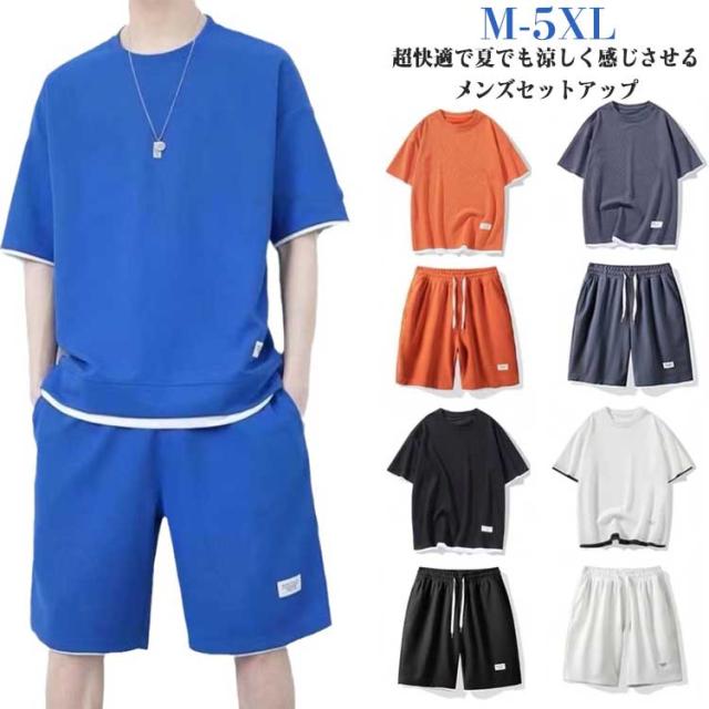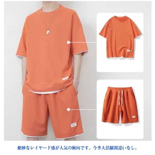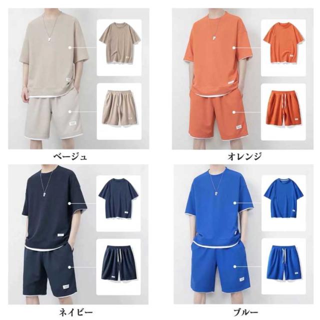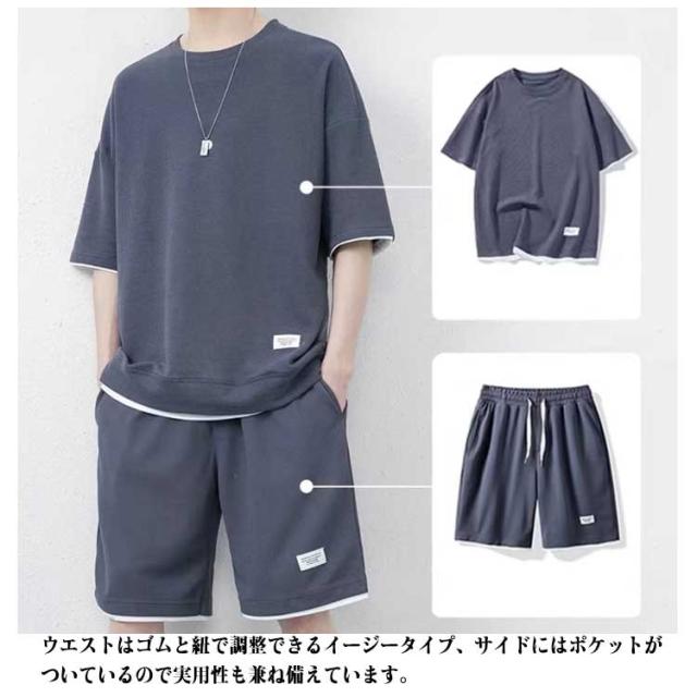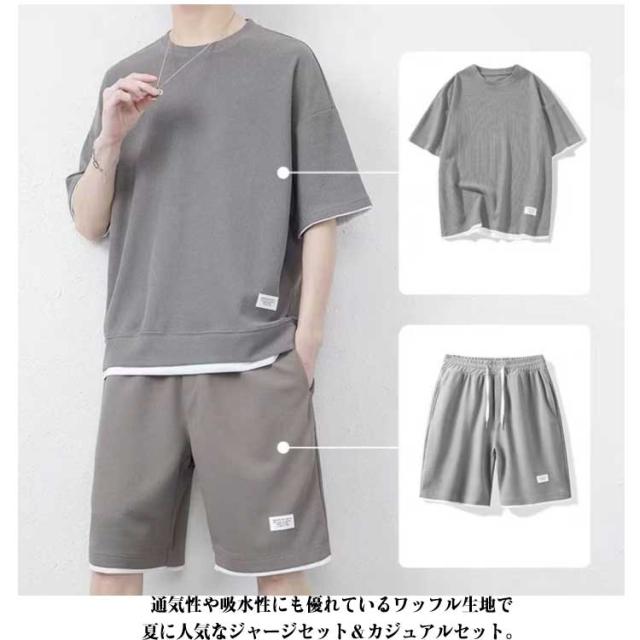 半袖 秋 セットアップ 男女兼用 ジャージ ワッフル生地 ゆったり ズボン トレーナー セットアップ スウェット 通気性 春夏 ウエストゴム 大きいサイズ 春夏 上下セット 体型カバー ギフト