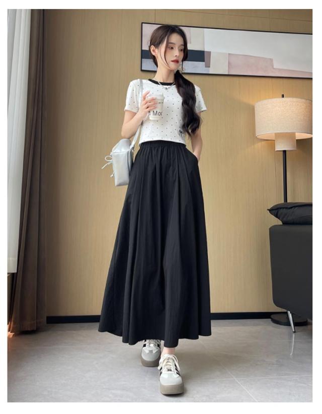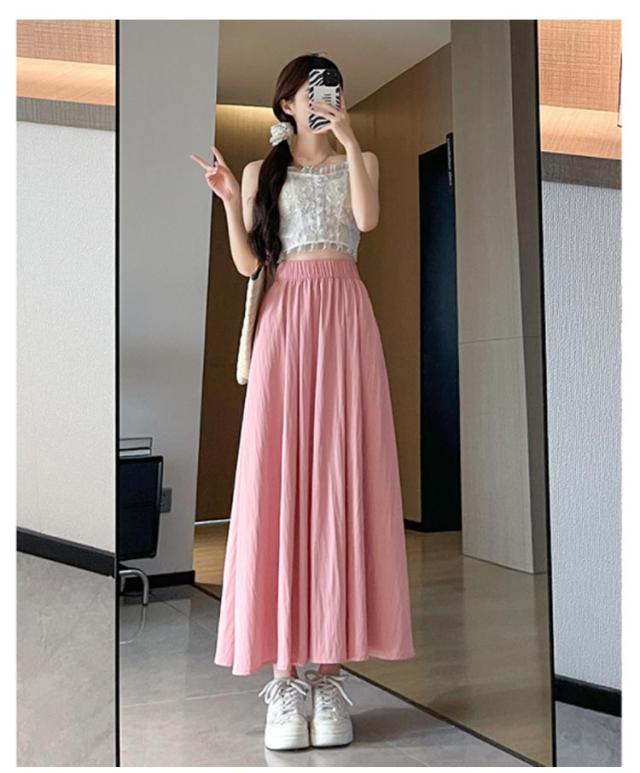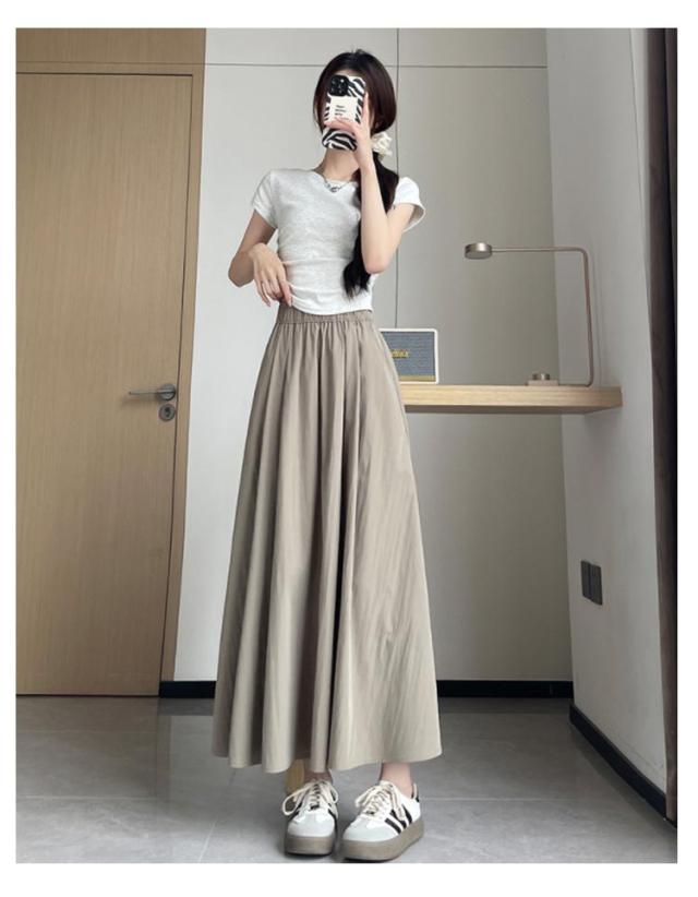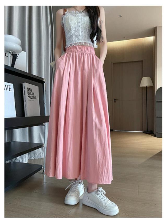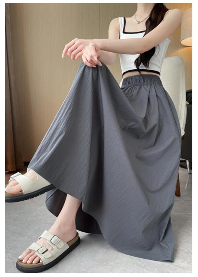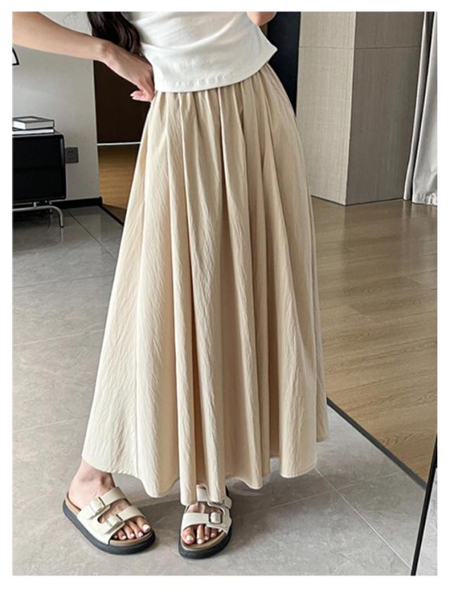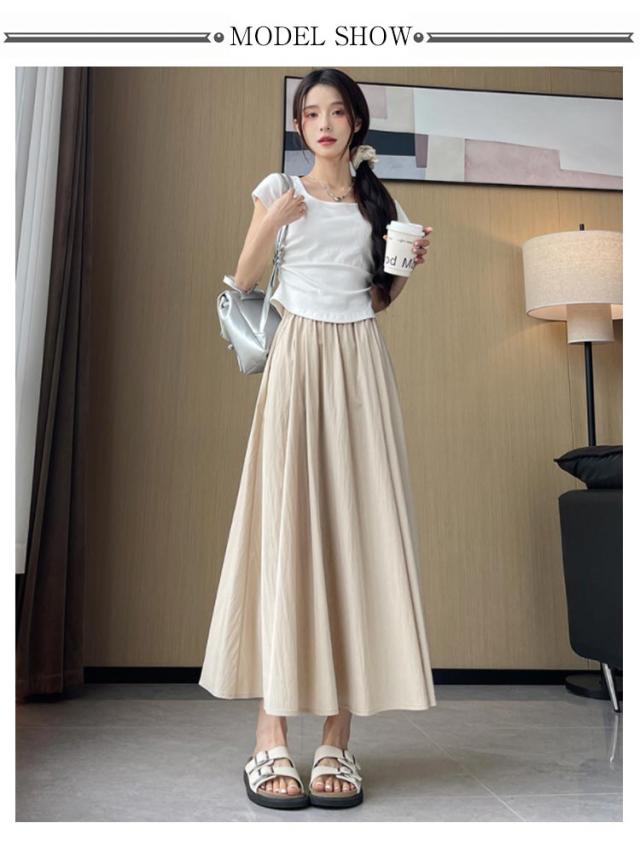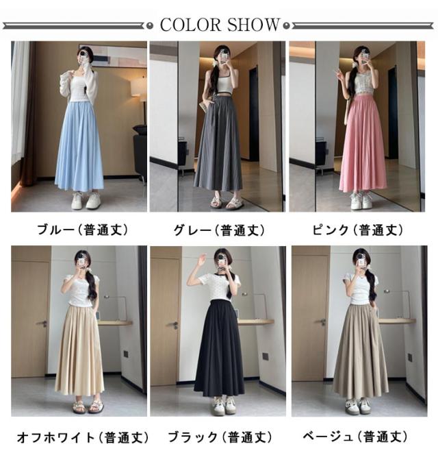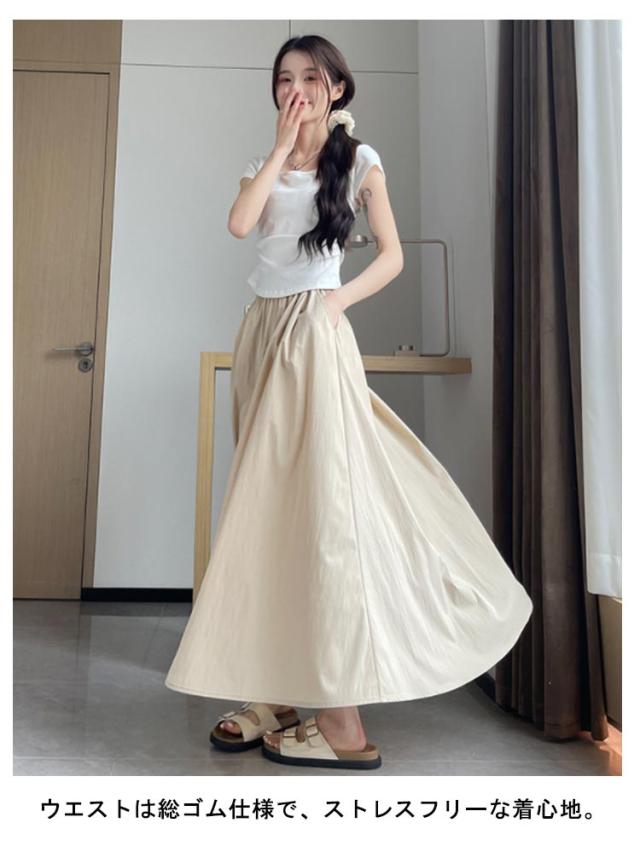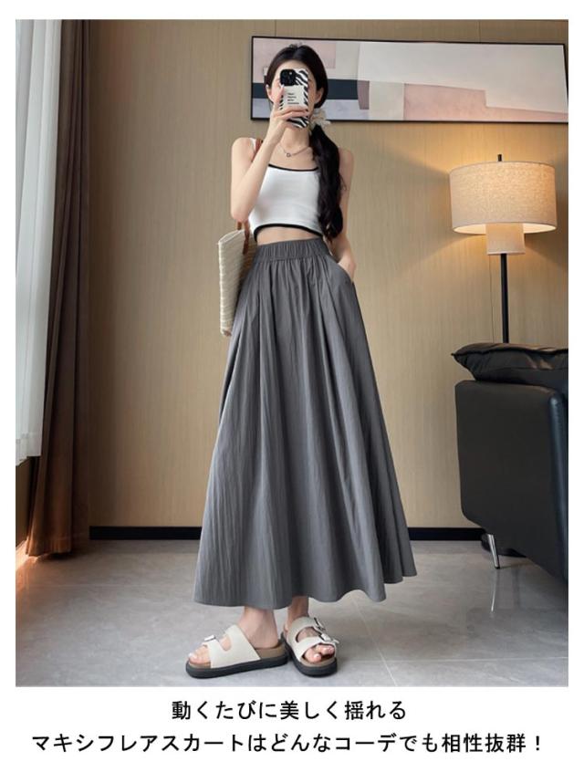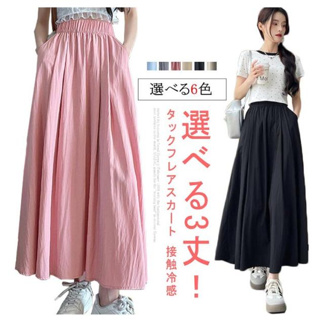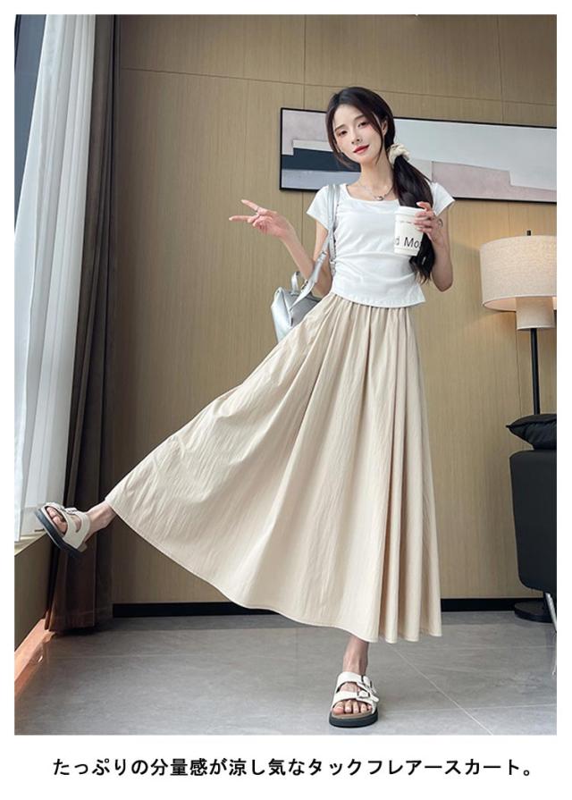 フレアスカート 接触冷感 レディース ロングスカート ロング丈 マキシスカート タック スカート 涼しい ひんやり ゆったり ウエストゴム 体型カバー 無地 春 夏 ボリューム ボトムス きれいめ カジュアル 送料無料