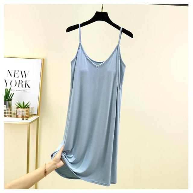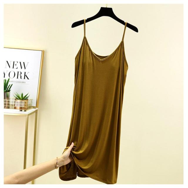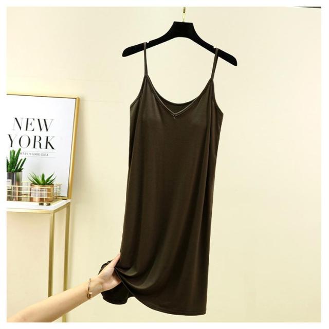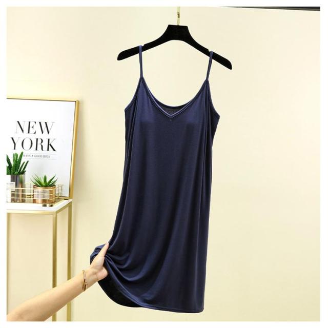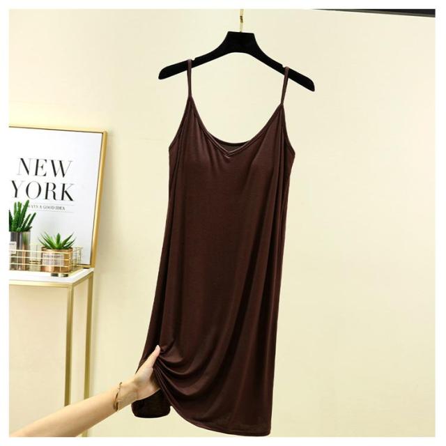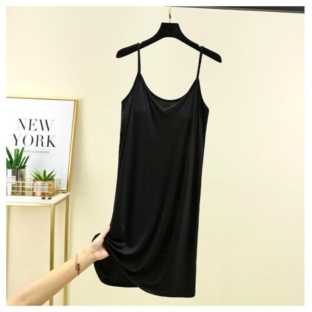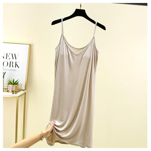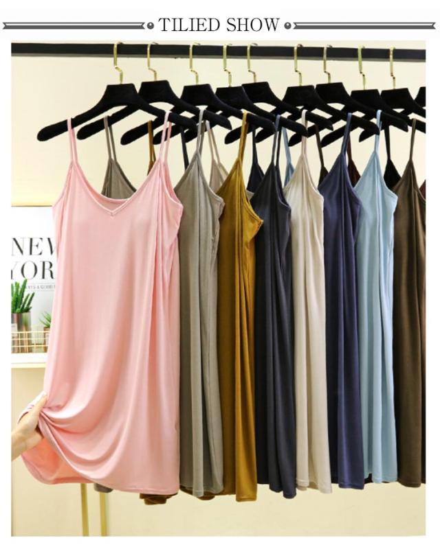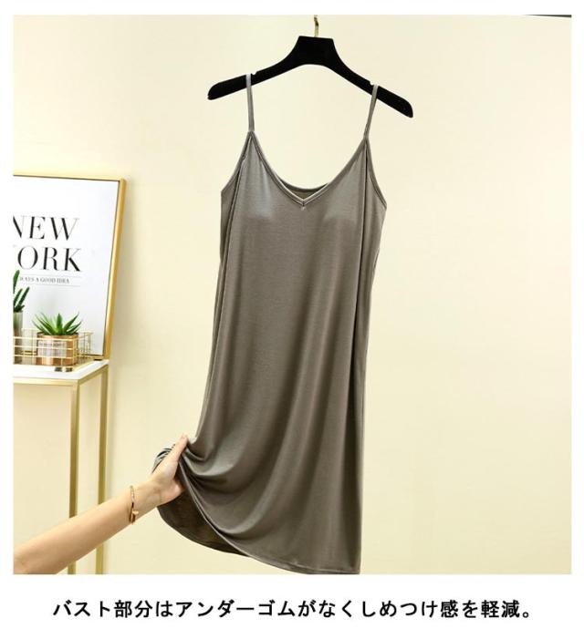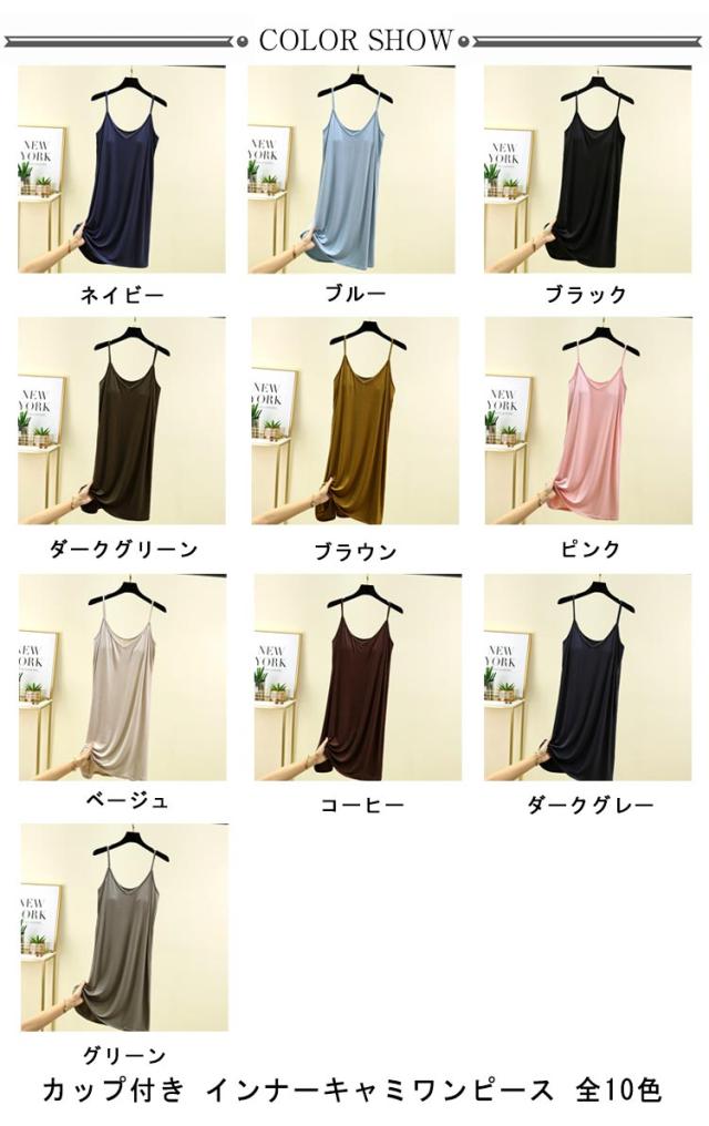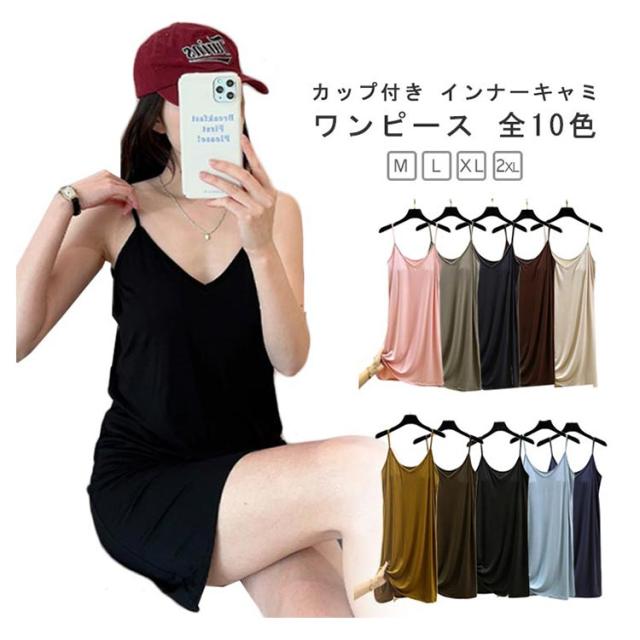 | カップ付き インナーキャミワンピース 全10色 ブラ+キャミ+ペチコートがこれ1枚でOK! 速乾性・伸縮性に優れたモーダル生地はソフトで気持ち良い肌ざわり。 バスト部分はアンダーゴムがなくしめつけ感を軽減。 透け感のあるワンピースなどのインナーにお薦めです。 リラックス出来る部屋着やナイトウエアにしてもいいかも。 | |