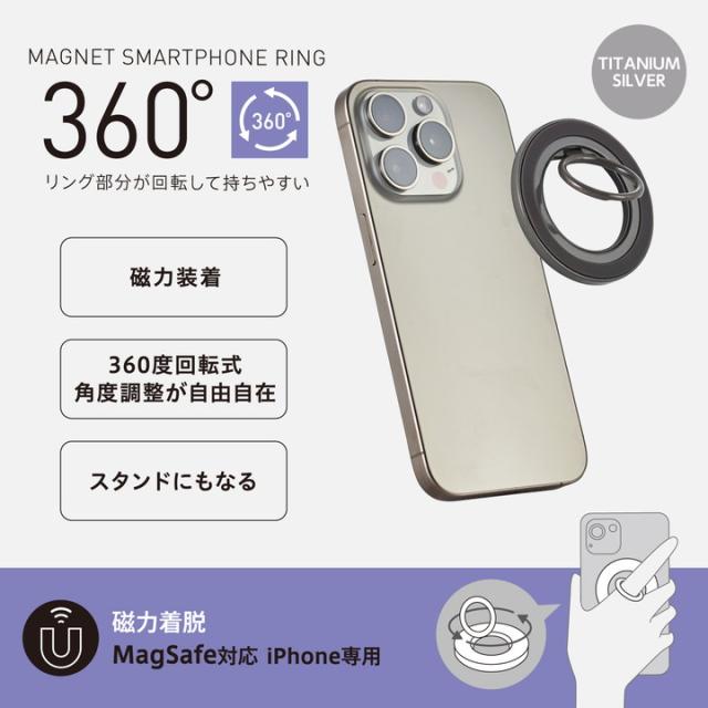 エレコム マグネット スマホリング MagSafe対応 滑り止めゴム 360°回転 MAGKEEP チタニウムシルバー ┃P-STRMK360SV
