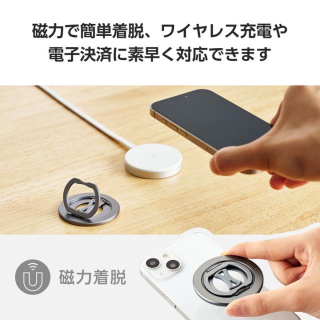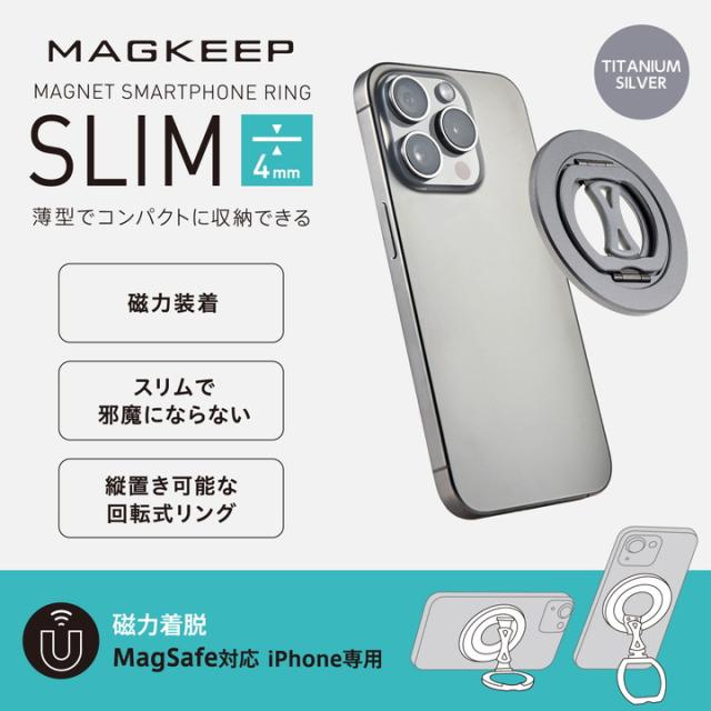 エレコム マグネット スマホリング MagSafe対応 スタンド SLIM MAGKEEP チタニウムシルバー ┃P-STRMKSLSV