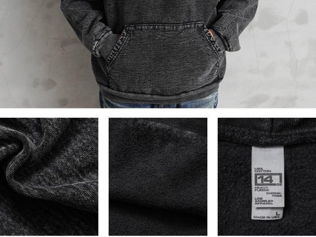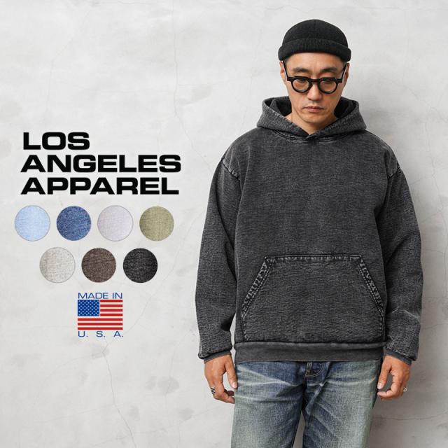 LOS ANGELES APPAREL ロサンゼルスアパレル HF09MW 14oz ミネラルウォッシュ ヘビーフリース プルオーバー フーディ スウェットパーカー MADE IN USA【T】|ロスアパ メンズファッション アメカジ ミリタリー 裏起毛 米国製 秋 冬