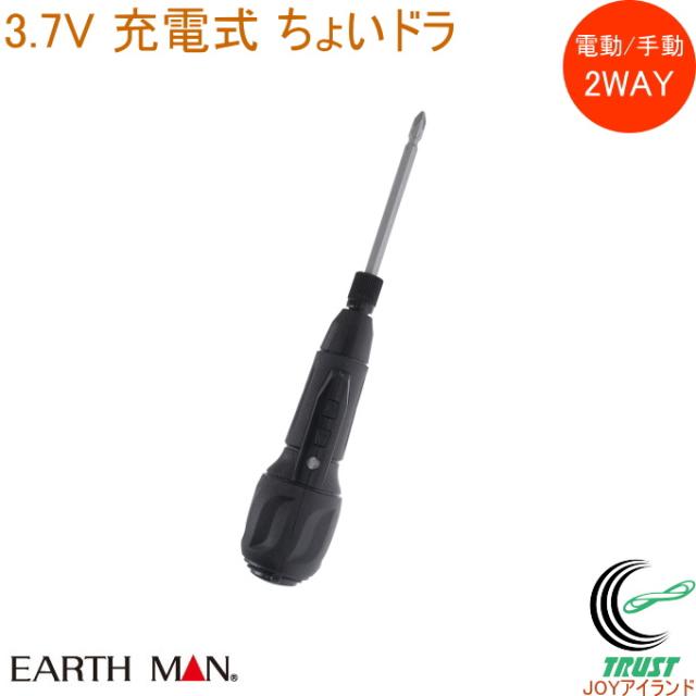 EARTH MAN 3.7V 充電式 ちょいドラ CDR-37LiBA 送料無料 家庭用 電動工具 作業工具 ドライバー 2WAY 電動 手動 USB充電式 LEDライト付 DIY 工作 軽量 コンパクト EARTH MAN アースマン 高儀
