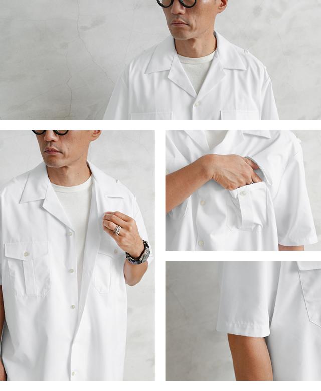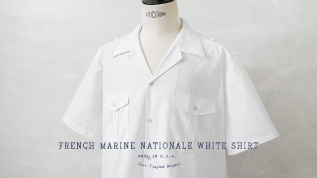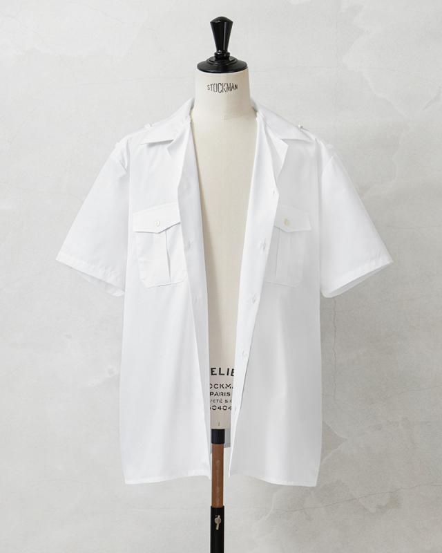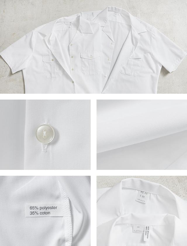 実物 新品 デッドストック フランス軍 MARINE NATIONALE ショートスリーブ ホワイト シャツ / フランス海軍【Cx】【I】|ミリタリーシャツ 半袖シャツ メンズファッション 開襟 オープンカラー 白シャツ 軍物 ヴィンテージ マリンスタイル ワークシャツ