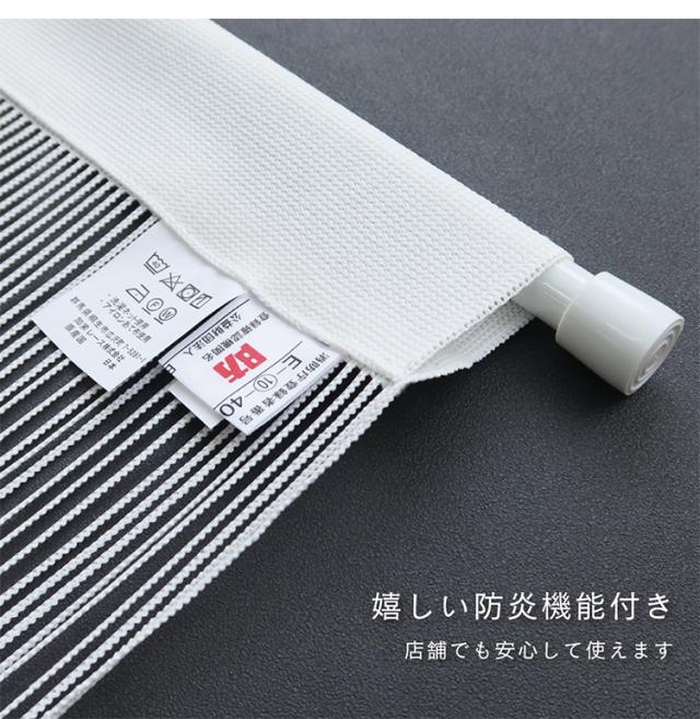 ・生地は燃えにくい素材の難燃糸を使用しています、燃えにくくもしもの時の安心安全な防炎ひものれんです。
