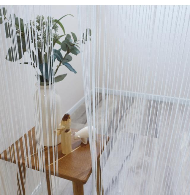 日本製 防炎 ひものれん 北欧風 間仕切り のれん 暖簾 約幅85cm×丈170cm 突っ張り棒 キッチン トイレ 程よい透け感 おしゃれ 小窓 出窓 お洒落 防炎加工 取り付け簡単(代引不可)【送料無料】