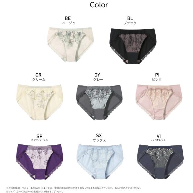 ●フロントにレースをあしらい、裏打ち付きで透けにくい、使いやすいショーツ。 |