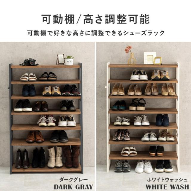 サンダルからブーツまで、靴の高さに合わせて棚の高さを組み換えできるシューズラック。靴が見やすく取り出しやすいオープンタイプ。