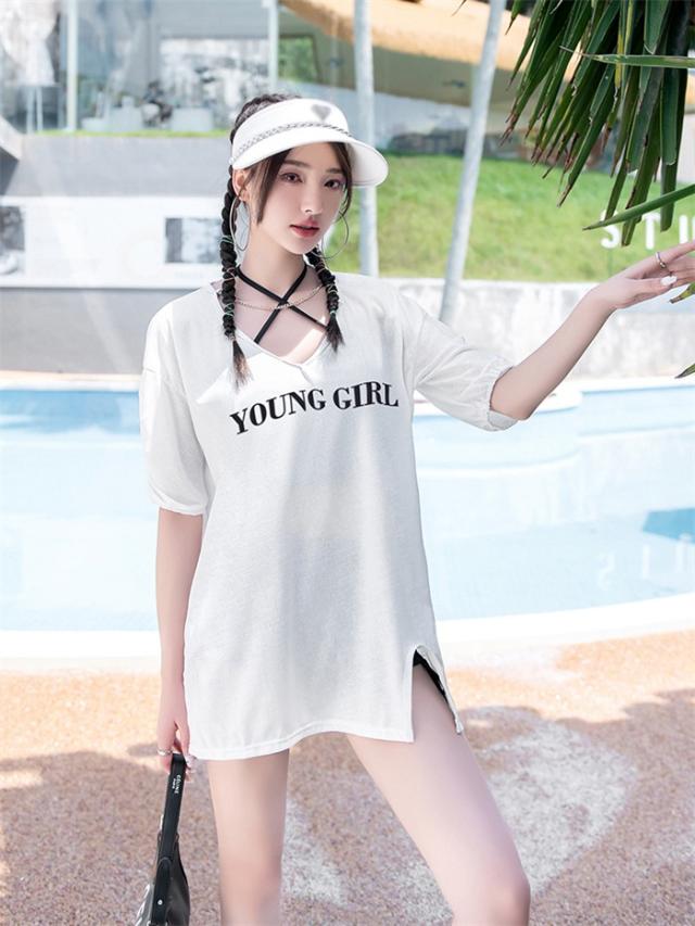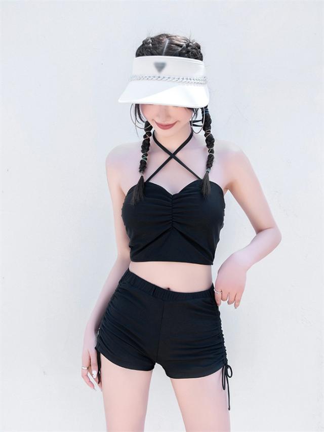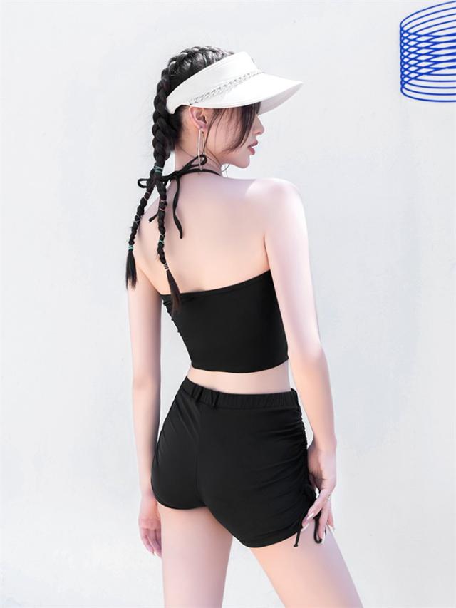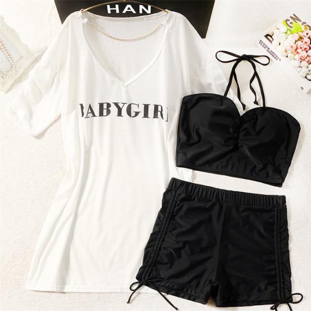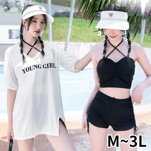 【商品名】水着 レディース タンキニ 体型カバー 中学生 高校生 3点セット 半袖シャツ ラッシュガード ママ水着 セパレート ショートパンツ 10代 20代 韓国 小胸 二の腕カバー 露出控えめ 女の子 30代 海 プール リゾート おしゃれ 可愛い カバーアップ 胸パッド付き 黒 白