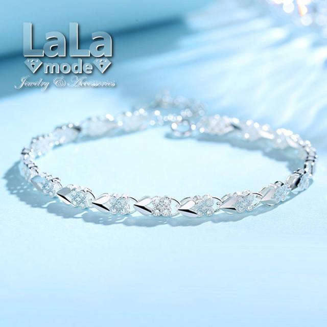 ブレスレット レディース 花 クローバー リンクチェーン シルバー 925 ロジウムコーティング プラチナ仕上げ 金属アレルギー対応 30代 40代 50代 華奢 バングル 送料無料 プレゼント 人気 おしゃれ かわいい シンプル アクセサリー ジュエリー