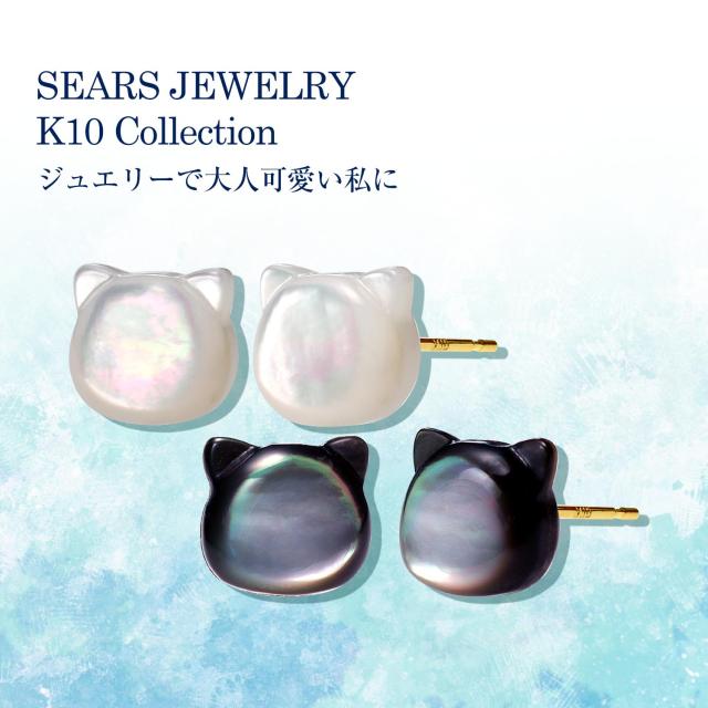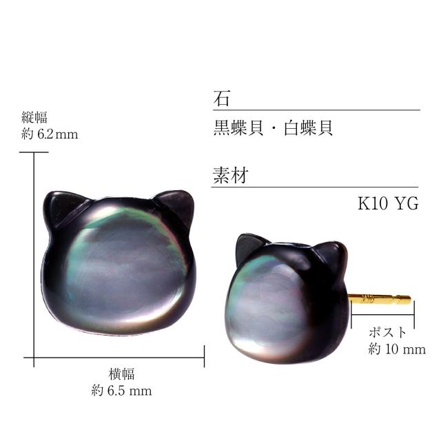 シアーズ ネコ ピアス レディース 猫 かわいい 白蝶貝 黒蝶貝 K10 イエローゴールド se102-0001 女性 誕生日プレゼント クリスマス_wp
