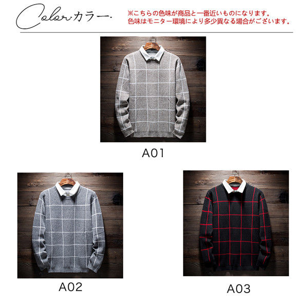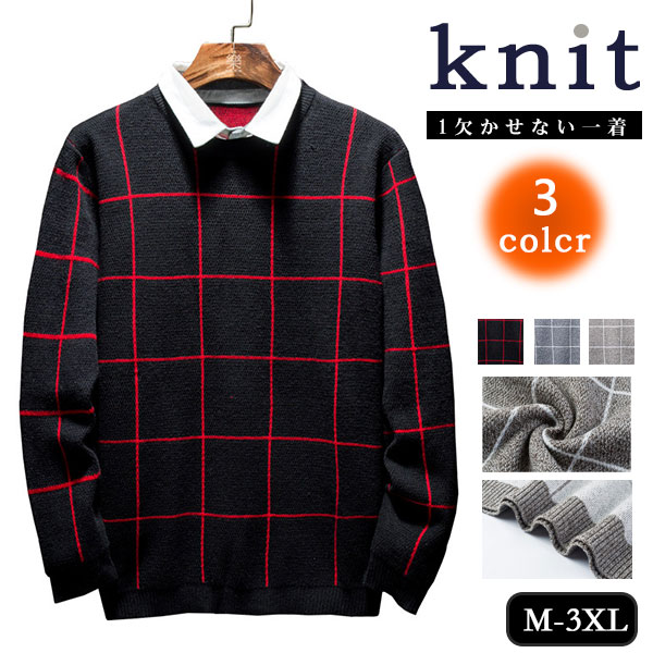 ニットセーター メンズ チェック柄 ケーブル編み トップス ゴルフウェア 洗える ボーダー プルオーバー 無地 秋 冬 ウォッシャブル おしゃれ