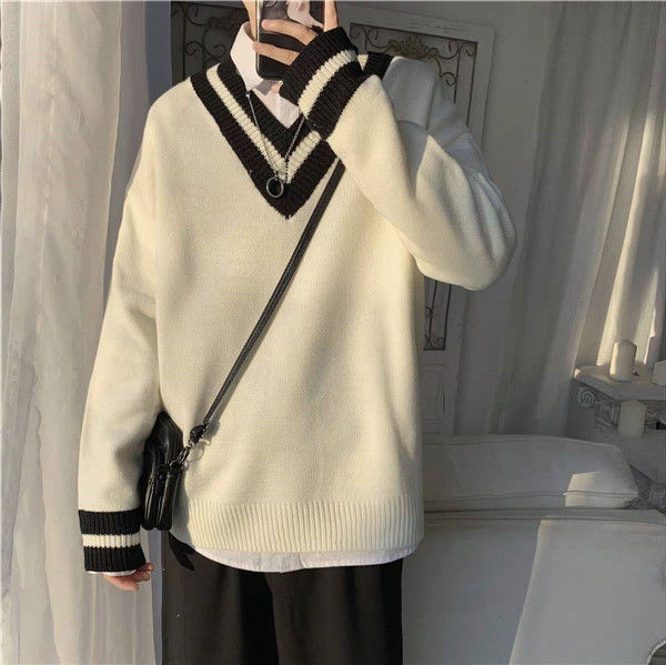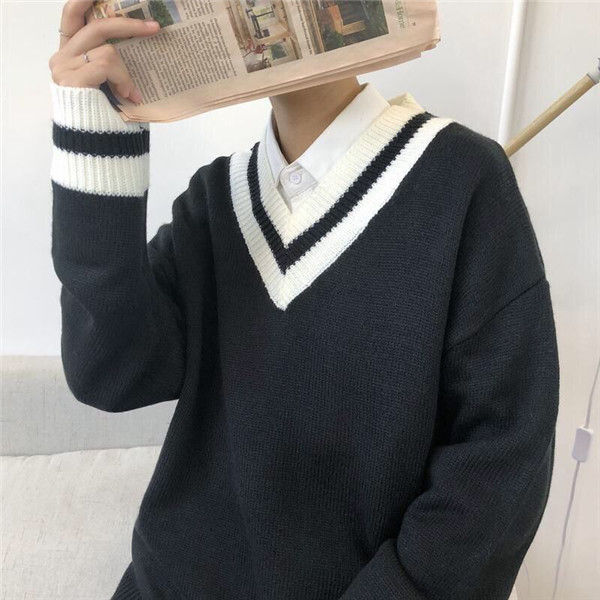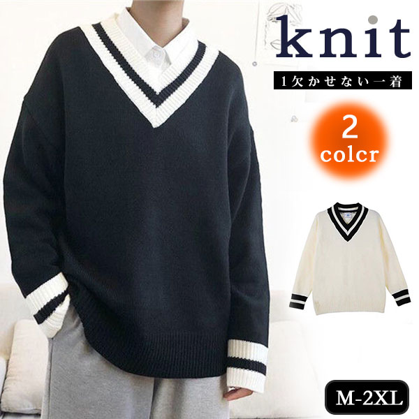 大人気 ニットセーター メンズ Vネック セーター ケーブル編み トップス カジュアル オーバーサイズ 制服 高校生 中学生 通学 体型カバー