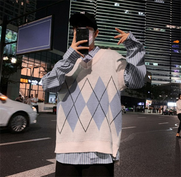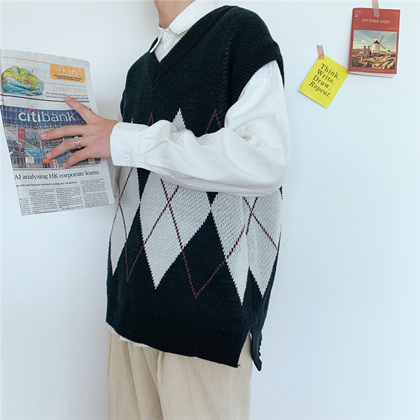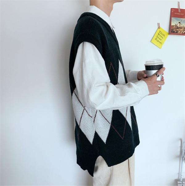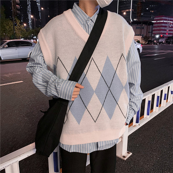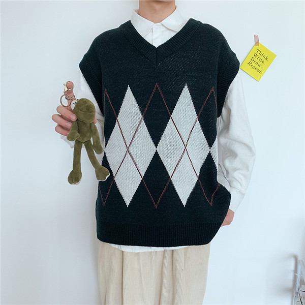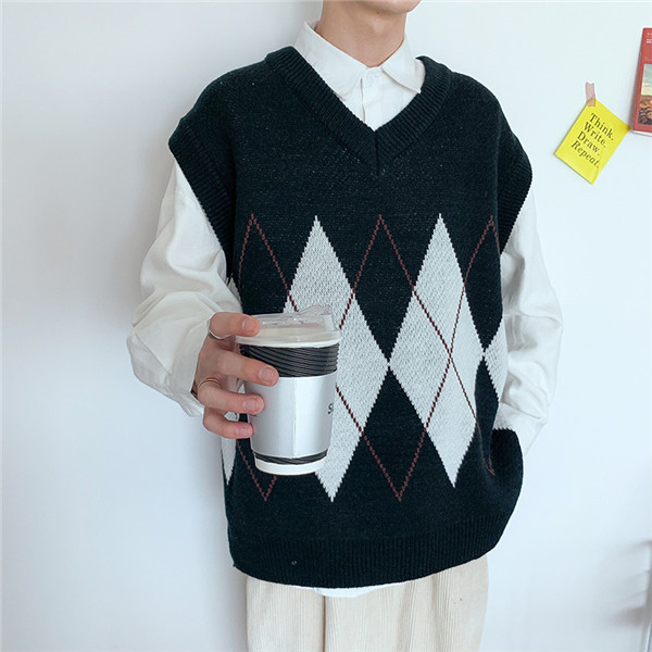 セーター ベスト メンズ ニットベスト フォーマル スーツ Vネック 防寒 ビジネス 結婚式 チルデンベスト 菱形柄 カジュアル 通勤 紳士服 秋 冬