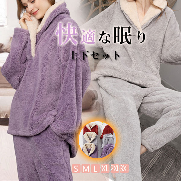 ルームウェア 部屋着 パジャマ レディース セットアップ あったか 冬 モコモコ フランネル 寝巻き フリース ナイトウェア 2点セット 上下セット