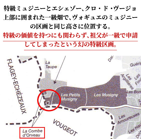 【半分以上の区画がペロ=ミノの区画と隣り合わせ、ミュジニーとエシェゾーに挟まれたシャンボール1級。ルソーのル・シャンベルタンの真隣のシャルム、クロ・ド・ベーズの真上のジュヴレィ1級ベレール、ルーミエのクロ・ド・ラ・ビュシエールの隣の区画、そしてクロ・デ・ランブレーのもう一人の所有者!