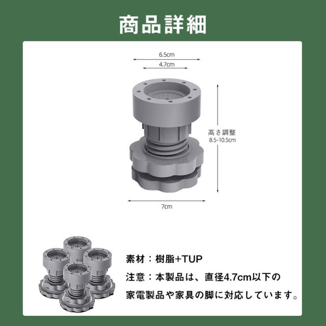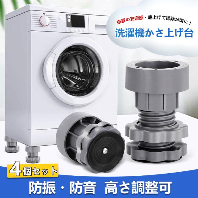 洗濯機かさ上げ台 洗濯機 置き台 4個入り かさ上げ 防振ゴム 防音ゴムマット 冷蔵庫 ドラム式 大型家電 高さ調節可能 滑り止め 防水 振動防止
