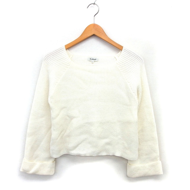 【中古】デュカ Dukkah ニット セーター ラグランスリーブ クロップド ロールアップ リブ スクエアネック 長袖 F