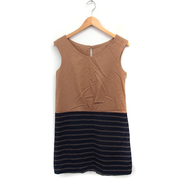 【中古】サウストゥーサウス SOUTH to SOUTH 切替 ワンピース ノースリーブ ひざ丈 ウール 38 キャメル 茶 ネイビー 紺