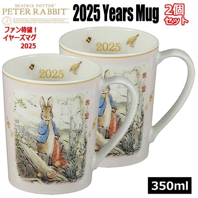 2個組 PETER RABBIT (ピーターラビット2025イヤーズマグ お得な2個セット)マグカップ 陶器 食器 2025年 記念限定品 ギフト 贈り物