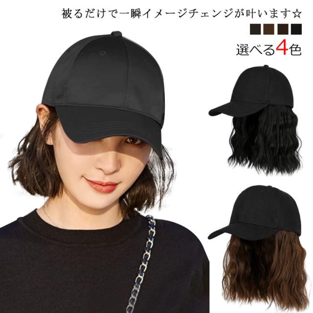 キャップウィッグ 帽子のように簡単に被れる ウィッグ ボブ 帽子付きウィッグ 可愛い おしゃれ 髪付き帽子 春夏