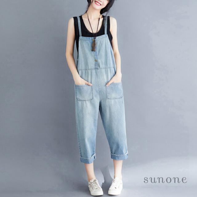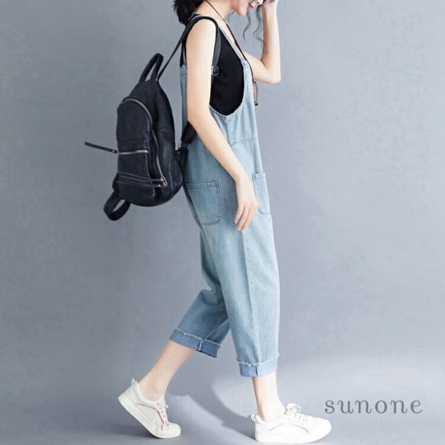 サロペット レディース オールインワン 九分丈パンツ デニムサロペット サロペットオーバーオール ワイド カジュアル 秋冬 大人 可愛い きれいめ カジュアル ゆったり