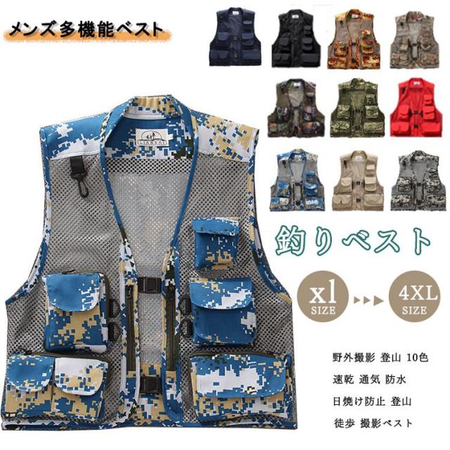 ベスト メンズ 春夏 大きいサイズ アウトドア 清涼 作業ベスト メンズ 多機能ベスト アウトドア キャンプ 釣り 夏用ベスト アウター メッシュベスト 作業服 ベスト メ