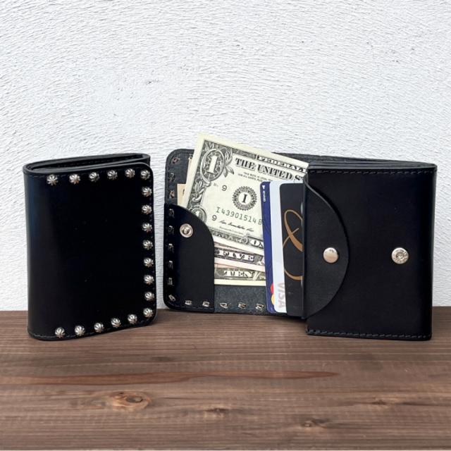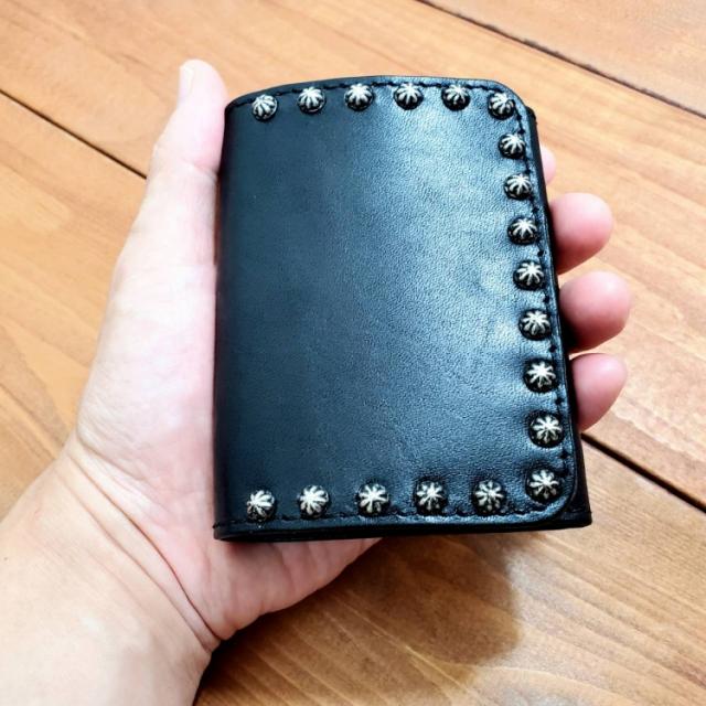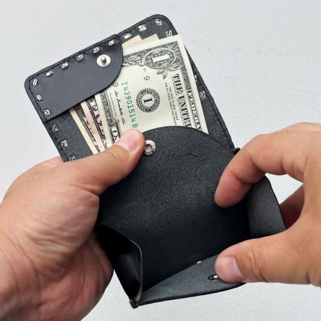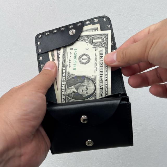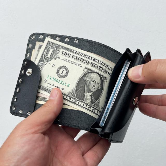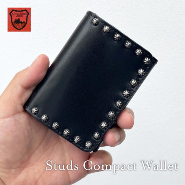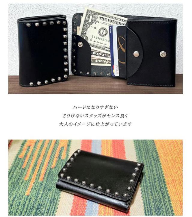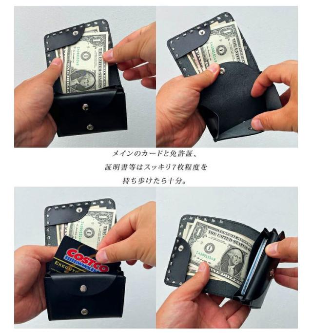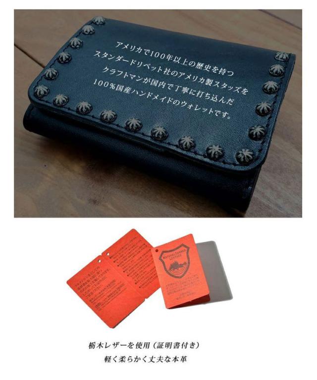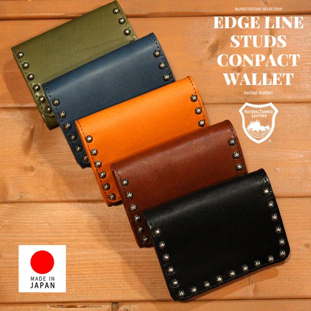 日本製 栃木レザー ウォレット エッジライン USAスタッズ 2つ折り財布 コンパクト財布 本革 使いやすい ミニウォレット 牛革 シンプル 日本製 ハンドメイド 8-w100lw