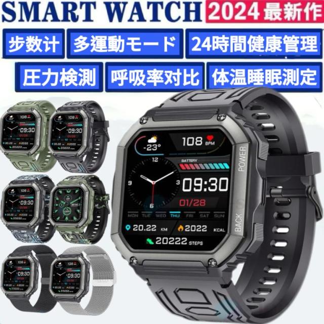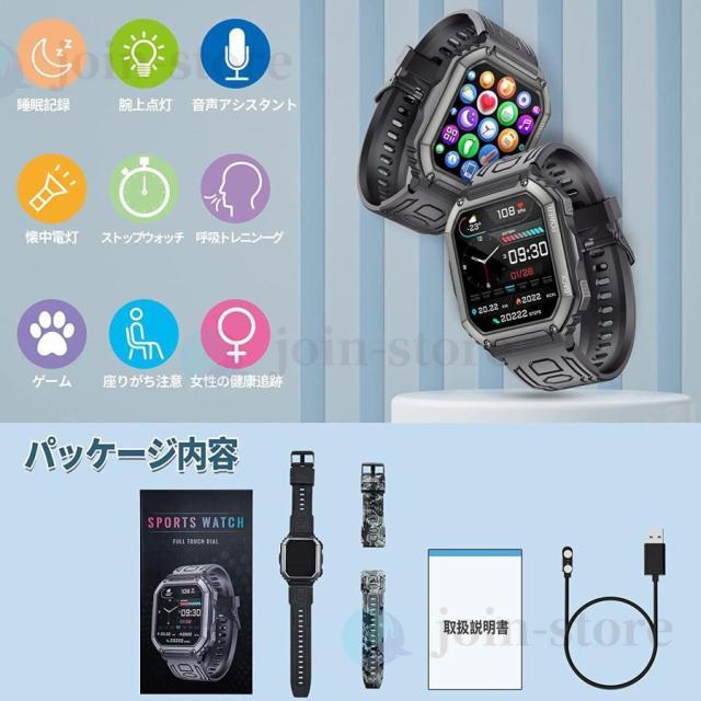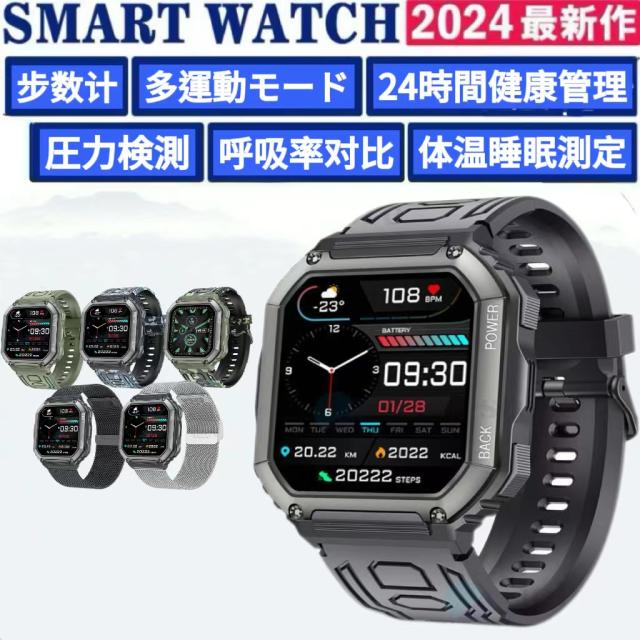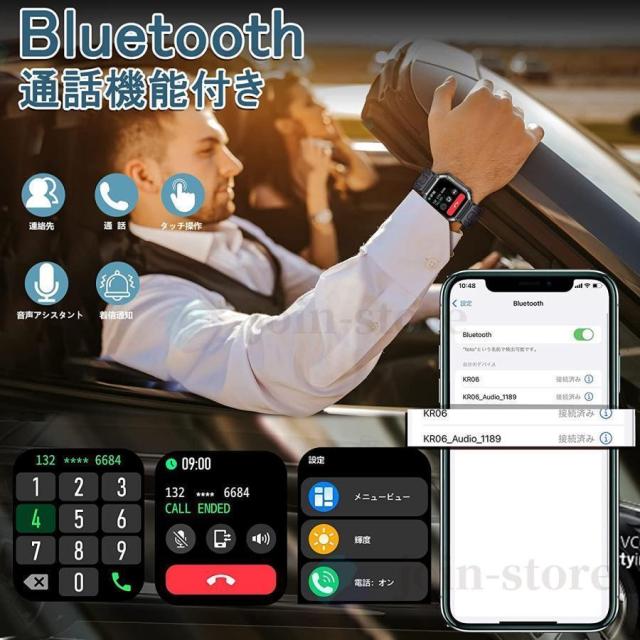 スマートウォッチ KR06 日本製センサーじしん警報 SOS緊急電話 通話機能 24時間健康管理 呼吸率 体温 睡眠 運動モード 心拍計 歩数計 LINE着信通知 2024新規