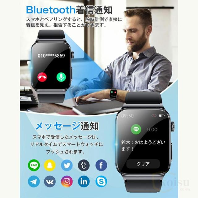 スマートウォッチ TK15 日本製センサーじしん警報 SOS緊急電話 通話機能 24時間健康管理 呼吸率 体温 睡眠 運動モード 心拍計 歩数計 LINE着信通知 2024新規