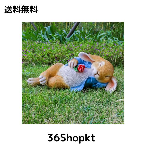 【お昼寝うさぎとローズ】ローズはロマンチックな雰囲気を演出し、眠りの姿は艶やかに人々を、生活に憧れ、ローズに愛し、キュートな彫像があなたの家をもっと暖かくて美しくさせます!