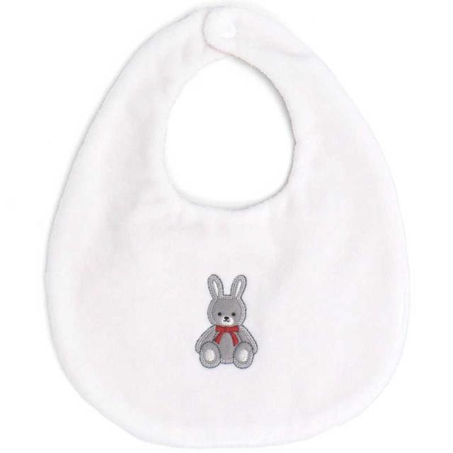 シャーリング生地の肌触りなめらかなタオルに、くま・うさぎ・いぬのワンポイントが上品なデザインのスタイです。