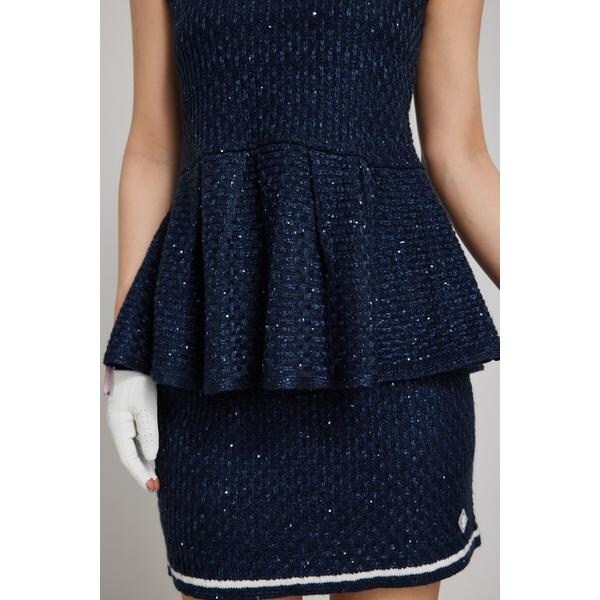 【RIENDA GOLF】シャイニーツイードペプラムニットTOP