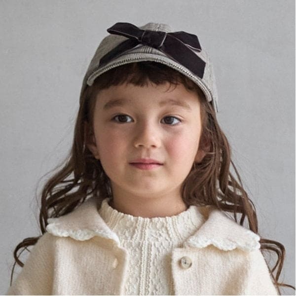真ん中の大きなベロアリボンが目を引くキャップです。