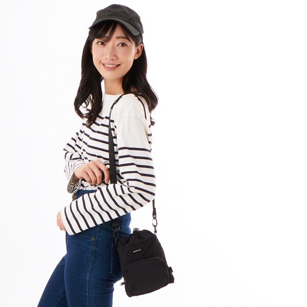 はっ水加工もされており、普段使いや旅行先でも大活躍。貴重品や携帯など身に着けておきたいものを入れて。