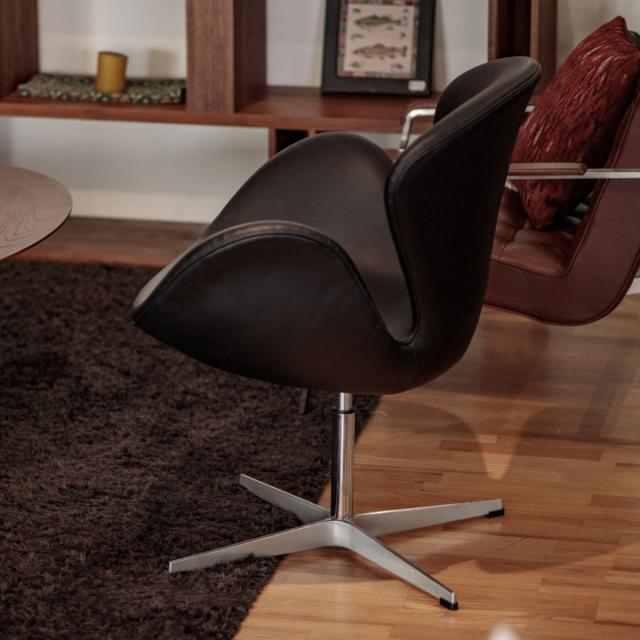 リビングチェア 回転式 座面高44cm 本革 ラウンジチェア Sイージーチェア ( レザー スワンチェア リプロダクト デザイナーズチェア チェア 椅子 リビング 書斎 デスクチェア オフィスチェア )