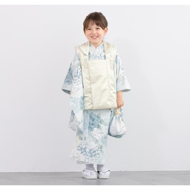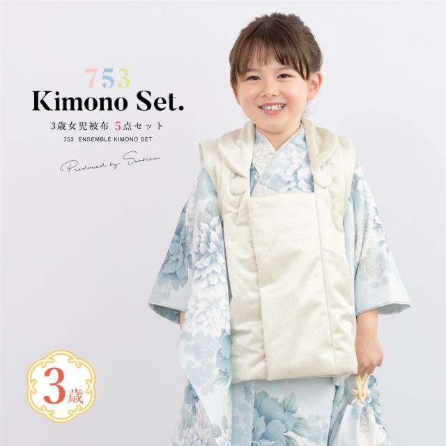 七五三 着物 3歳 レトロ 被布 販売 女の子 三歳 着物セット 被布コート 着物 襦袢 草履 セット かわいい おしゃれ 水色 白 和装 女児 子供 送料無料
