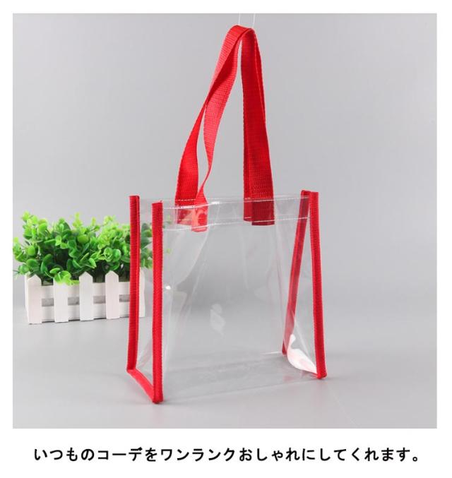 | 幅広い年代層から愛される人気なおしゃれクリアバッグ。 クリアな質感だからこそどんな色のお洋服にも合う万能な素材感。 いつものコーデをワンランクおしゃれにしてくれます。 幅広持ち手なので、安定感があって持ちやすい。 重たい荷物を入れても、腕に食い込みにくいので長時間のお出かけだってらくちん。 誕生日や結婚式のギフトラッピングにも推し活にも大人気! | |