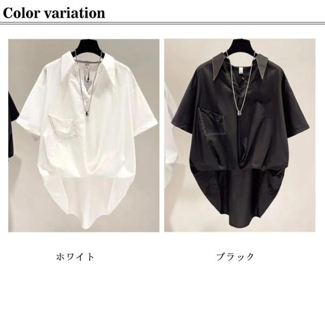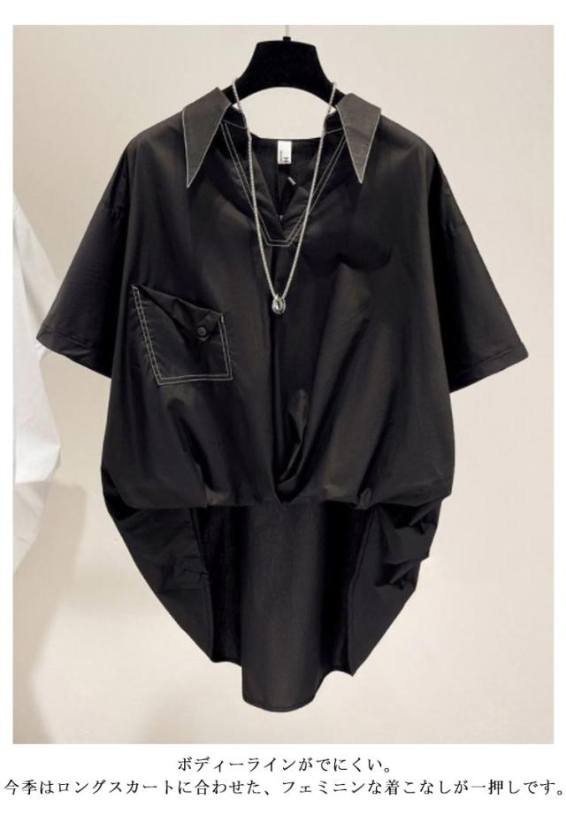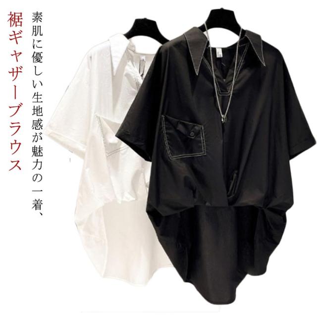 裾ギャザー 体型カバー チュニック ブラウス プルオーバー シャーリング シャツ 薄手 春夏 半袖シャツ トップス 大きいサイズ ウエスト レディース ゆったり ビックシャツ 半袖 トップス ブラウス 無地 シンプル 夏服 通勤
