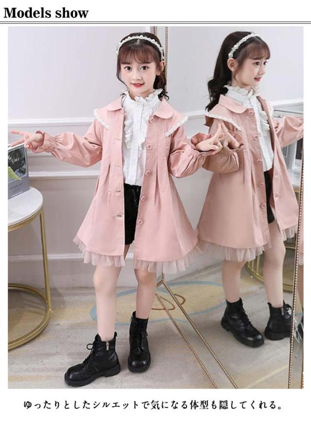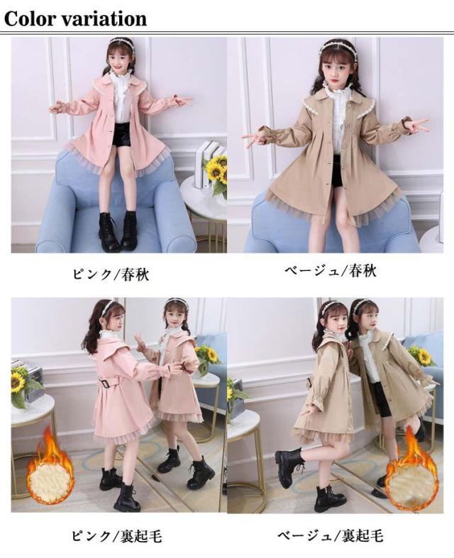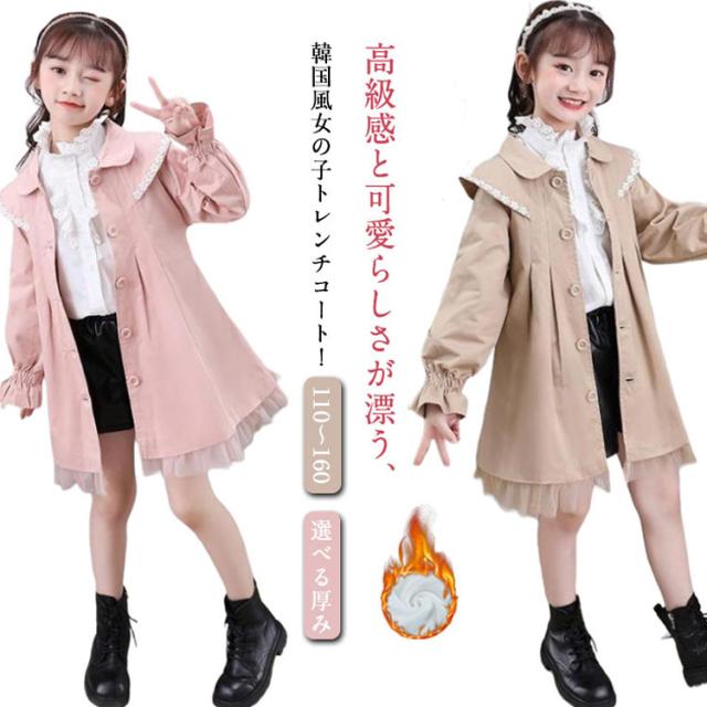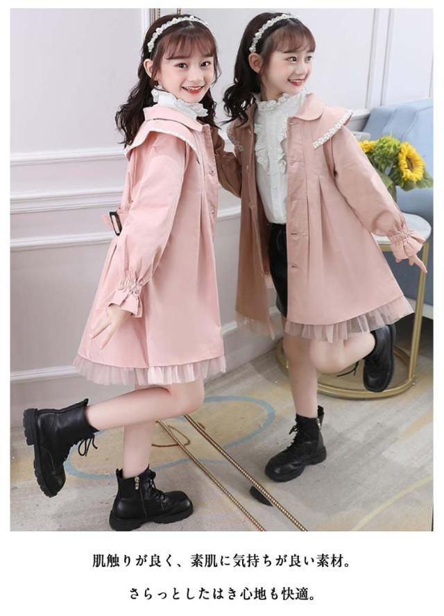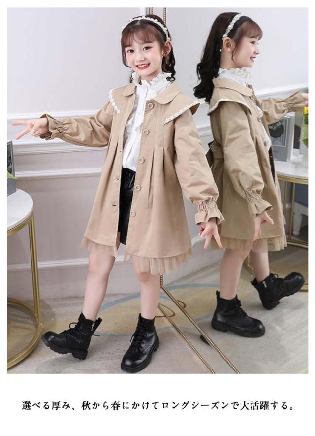 トレンチコート コート 子ども服 ジャケット キッズ ひざ丈 キッズ トレンチコート 女の子 裏起毛 冬 ロング丈 可愛い 子供コート 春秋 子供服 かわいい トップス プリンセス風 上着 ファッション 春秋 スプリングコート キッズ服 ジュニア