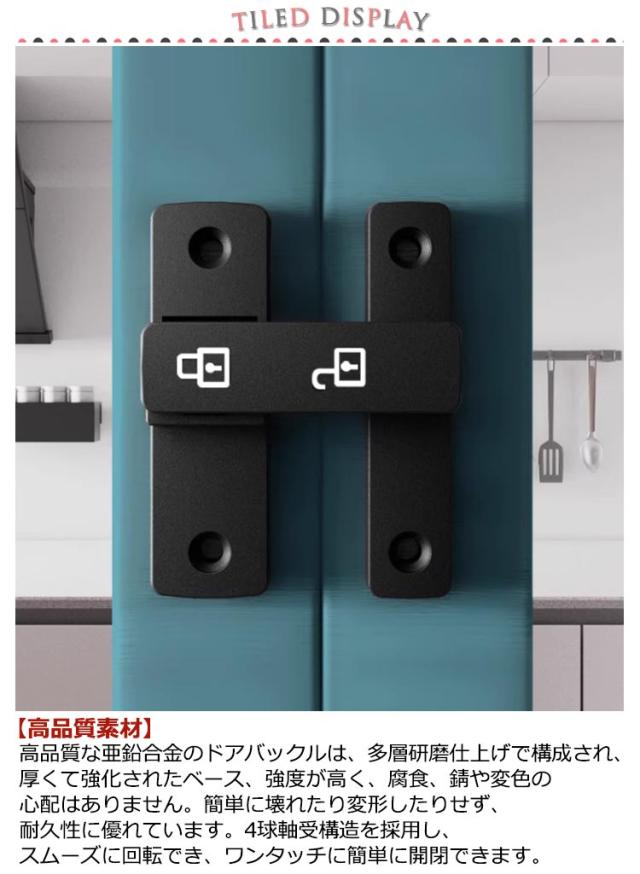 | 90度・180度/夜光 【高品質素材】高品質な亜鉛合金のドアバックルは、多層研磨仕上げで構成され、厚くて強化されたベース、強度が高く、腐食、錆や変色の心配はありません。簡単に壊れたり変形したりせず、耐久性に優れています。4球軸受構造を採用し、スムーズに回転でき、ワンタッチに簡単に開閉できます。 【便利でシンプル】便利なフリップデザイン、プライバシーロック、フラップは、より快適な生活環境のためにさらなるセキュリティを提供します。 【取付けも簡単】取り付け用のネジが付属しているため、留め具をすぐに設置する事ができます。左または右にインストールすることを選択できます。特殊タイプで90度の角度で取り付けられるため、ドアや窓の安全を確保するために使用できます。 【安全保護】子供ケガ防止だけでなく、部屋の外に出ていかないようにしたり、様々な危険を防止できます。簡単施錠でスライドドアの防犯対策ができます。猫の脱走防止用としてもお使いいただけます。 | |