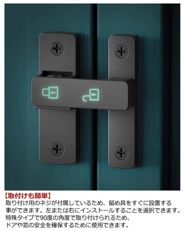 白 グレー スライディングドア ドアロック 90度/180度 鍵 後付け 黒 引き戸 ドアバックル 蛍光 ドア留め金ロック 引き戸 回転式 フリップラッチロック 後付け 引き戸 鍵 ロック 耐震ラッチ 防犯 部屋 窓