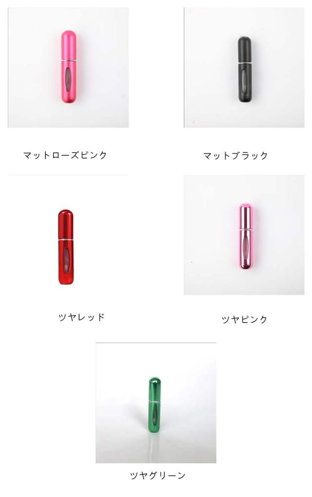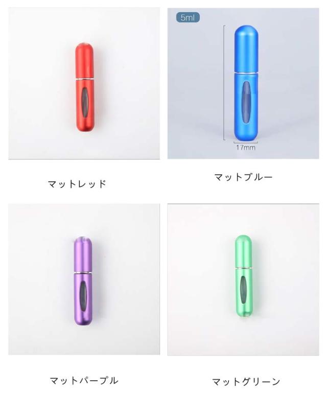 | サイズについての説明 | 【詰め替え方法】容量:5ml STEP1、ご使用前に3-5回プッシュして、排気してください STEP2、香水ボトルのスプレーヘッドとアトマイザ−外殻を外し STEP3、差し込んだアトマイザー本体を上下に押して、 漏れないように最大限4/5を目安に補充してください 【ご注意】元の香水のノズルサイズ:1.香水キャップが取り外せるもの;2.香水のノズルの直径が2-5mm範囲内であるまの、長さの範囲が4mm以上;香水のノズルのタイプについて:直/円柱状は詰め替えできます;使用出来ない対象:香水のキャップが取り外せるないものとノズルが太いもの(5mm以上);ホーン状/きのこ状/傘状など、詰め替えができません。 |