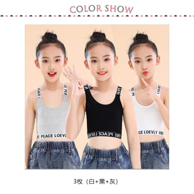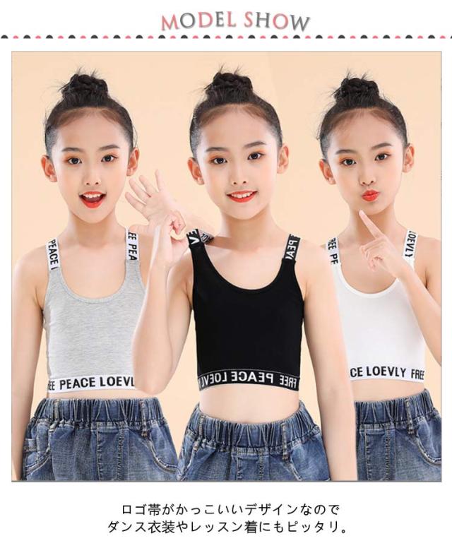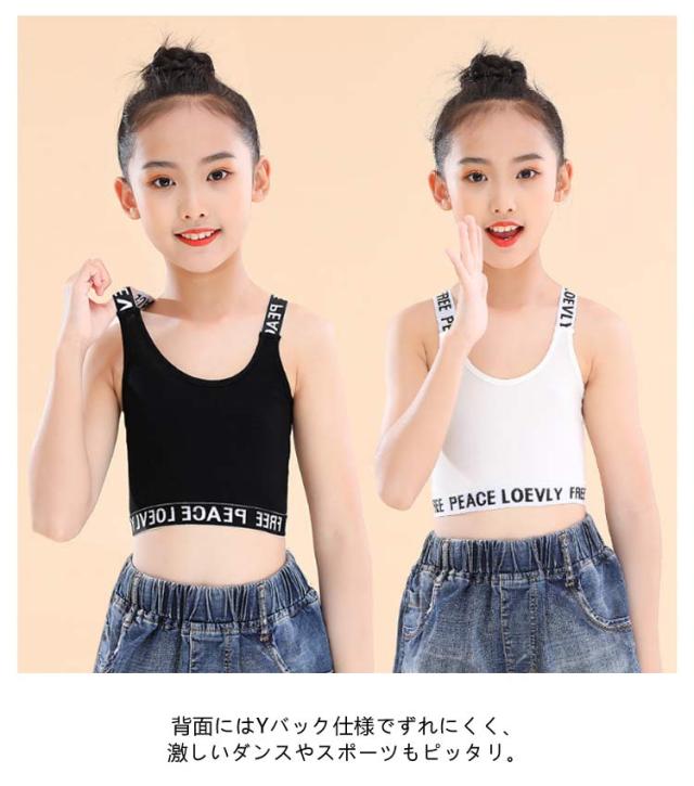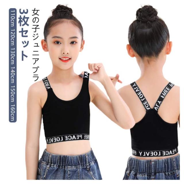 インナー ジュニアブラ キッズ 3枚セット 中学生 女の子 ダンス ハーフトップ Y字 キッズ 子供用 下着 小学生 タンクトップ へそ出し ガールズ 女子 ファーストブラ 英字 綿 ブラジャー ノンワイヤー コットン 肌着 シンプル