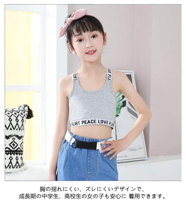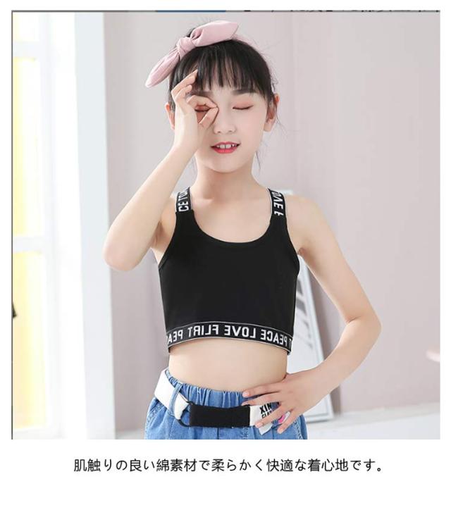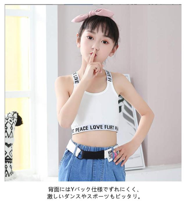 ファーストブラ Y字 女の子 ジュニアブラ 2枚セット 女子 小学生 ハーフトップ インナー キッズ ダンス 子供用 へそ出し スポーツブラ 下着 英字 キッズ 中学生 ガールズ 綿 ブラジャー ノンワイヤー コットン 肌着 シンプル