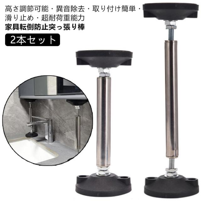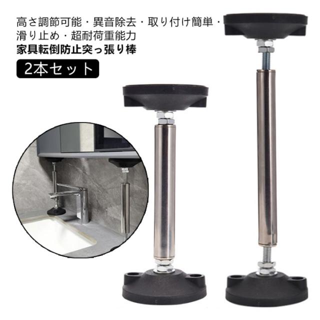 【2本セット 家具 転倒防止 】 滑り止め 調整可能 食器棚 【2本セット 家具転倒防止突っ張り棒 つっぱり棒 ステンレス製 耐震対策 地震対策 本棚 冷蔵庫 防災措置 天井用 タンス テーブル 棚 家具固定用 長い 狭い隙間用 耐震ポール 25-37cm 30-45cm