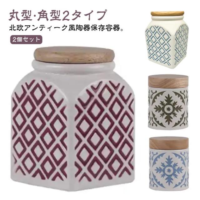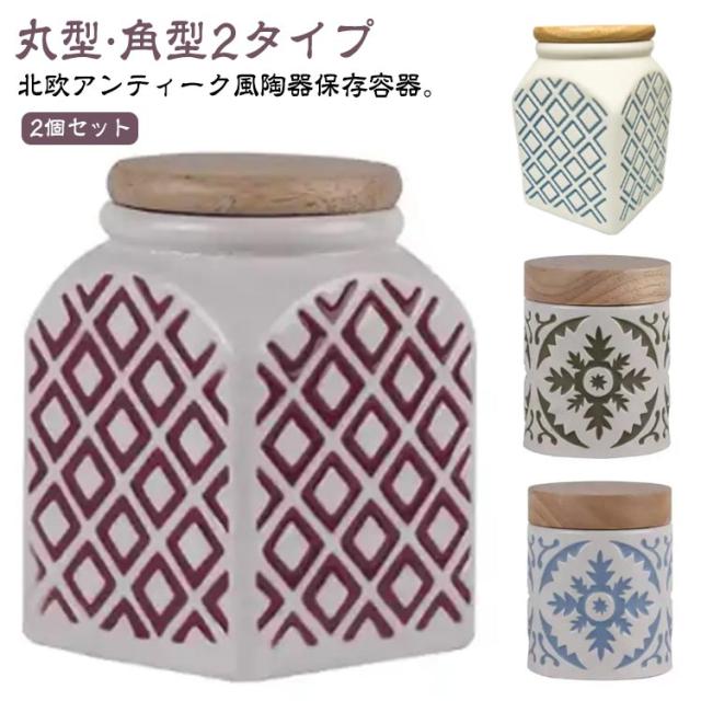 | 北欧アンティーク風陶器保存容器。【丸型?角型2タイプ】【2個セット】 ストレートなデザインと硬く焼き締まった磁器は、洗いやすく汚れも容易に落とせます。油汚れが付きやすいコンロ回りに最適です。 木蓋で温かい印象を与えるキャニスターです。木蓋はパッキン付きで食材を湿気から守ります。 コーヒー豆だけでなく、お塩、砂糖やナッツ、菓子類、スパイスなどの保存容器としてもおすすめです。 キッチンがかわいく彩ります。 | |