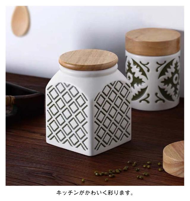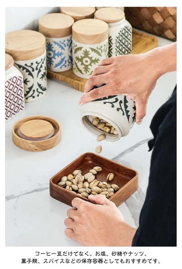 キャニスター 密閉 角型 セラミック お塩 木蓋付き 保存容器 四角 2個セット 丸 陶器 容器 砂糖 ストッカー おしゃれ 瓶 マルチ柄 チェック柄 北欧 調味料 木目 フタ付き コーヒー豆 パッキン付き 2個セット 茶葉 ポット 密閉保存容器 シュガーポット